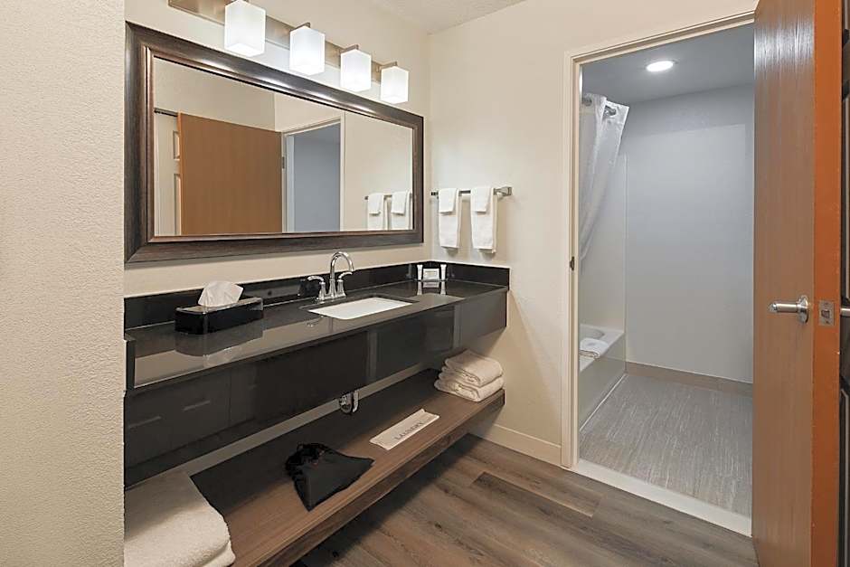 This suite features a seating area, fireplace, and spa bath.